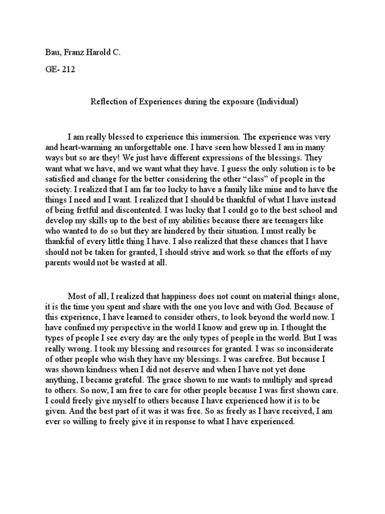 Example Of Reflection Paper In Work Immersion - Personal Reflective Essay Sample - Check spelling or type a new query.